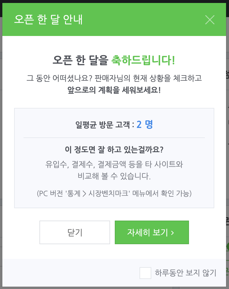 1건 처음 주문이 들어왔을 땐 앞으로 대박 날 것 같았는데 지금은 상품 올리는 것도 소홀해졌고 다시 이게 뭐가 될까 하는 생각뿐.